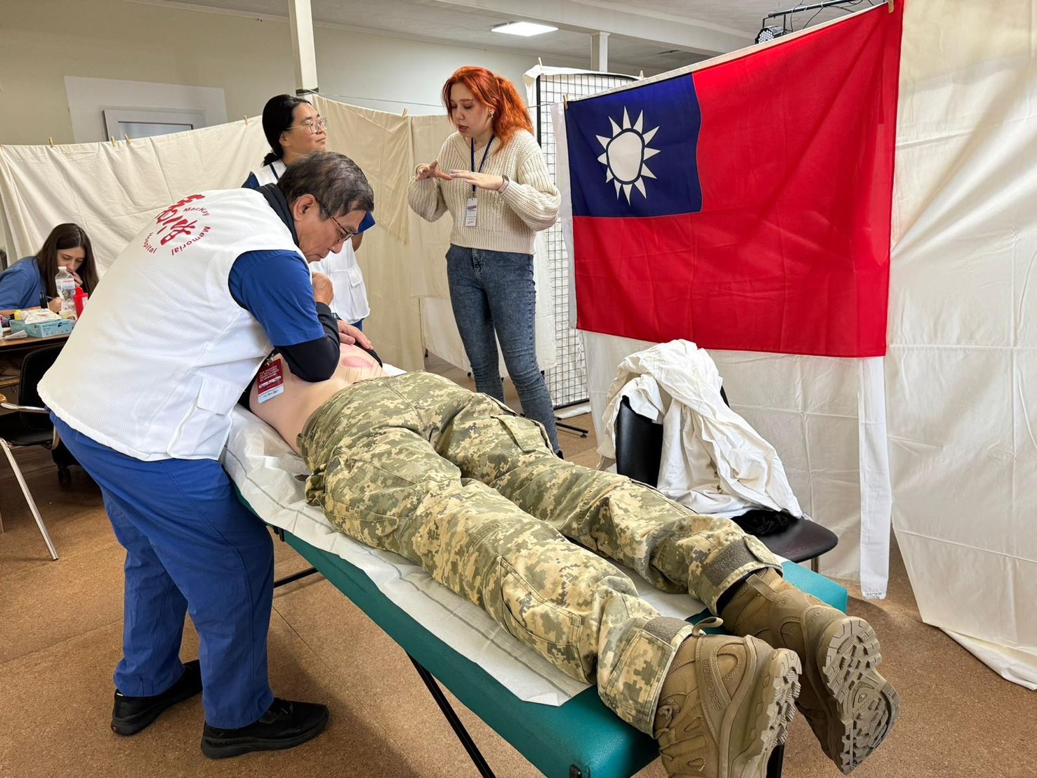 「空襲警報が鳴るたびに緊張しますが、ウクライナの人々の必要を思うと、私たちはあきらめるわけにはいきません」と、マッケイ記念病院 医務管理部および国際医療センターの蔡維徳(ツァイ・ウェイテ)主任医師は述べた。医療チームは3つの病院キャンパスから構成されており、蔡医師のほか、国際医療センターの孫家儀(スン・チャイ)、中医学部の陳光偉(チェン・クアンウェイ)主任、救急部の廖晨皓(リャオ・チェンハオ)医師、循環器内科の陳冠廷(チェン・グアンティン)医師、歯科の顏恩澤(イェン・エンツァー)医師、そして新竹と台東のマッケイ病院から急診医の許智鈞(シュ・チーチュン)医師と吳佩珊(ゴ・ハイシャン)医師が含まれている。